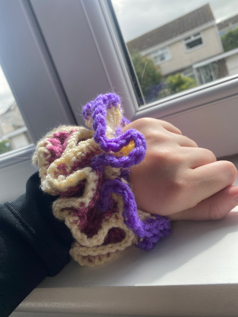The Scrunchie pattern is free on Ribblr.