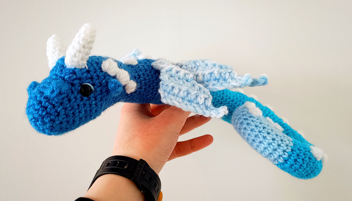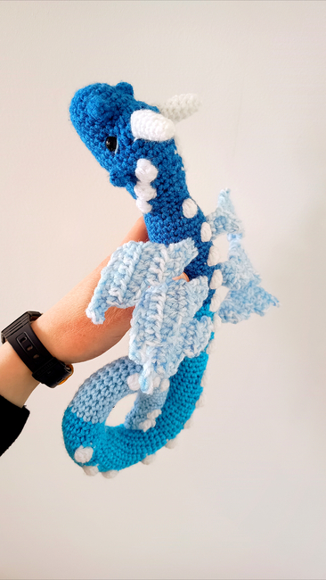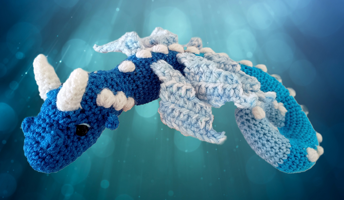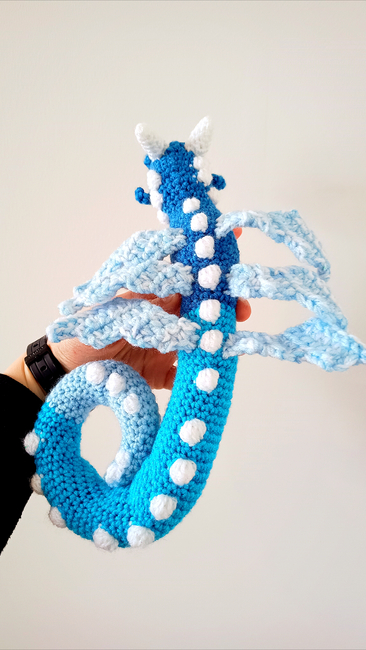 The Seri the water dragon pattern makes a Amigurumi. It is a Beginner Crochet pattern.