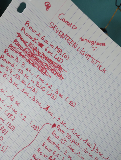 -If you want to do the 2nd or 3rd ver. of the Lightstick, look at the colors on internet and adapt it to the pattern (I think it must be the same