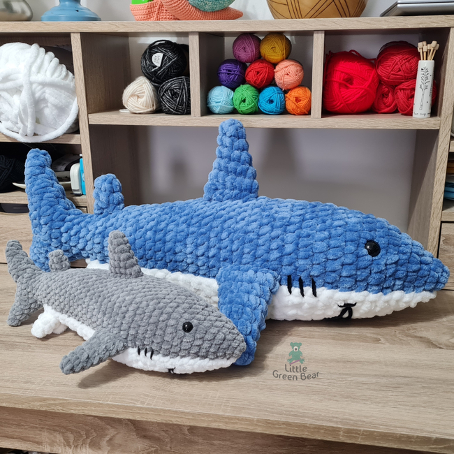 I've made Shannon the shark using a jumbo #7 weight yarn. This is ideal for a soft and huggable plush toy and is a pretty quick make. You can decide if you want to make your shark with or without the white underside piece. Shannon can also be made in super chunky yarn, with a smaller crochet hook.