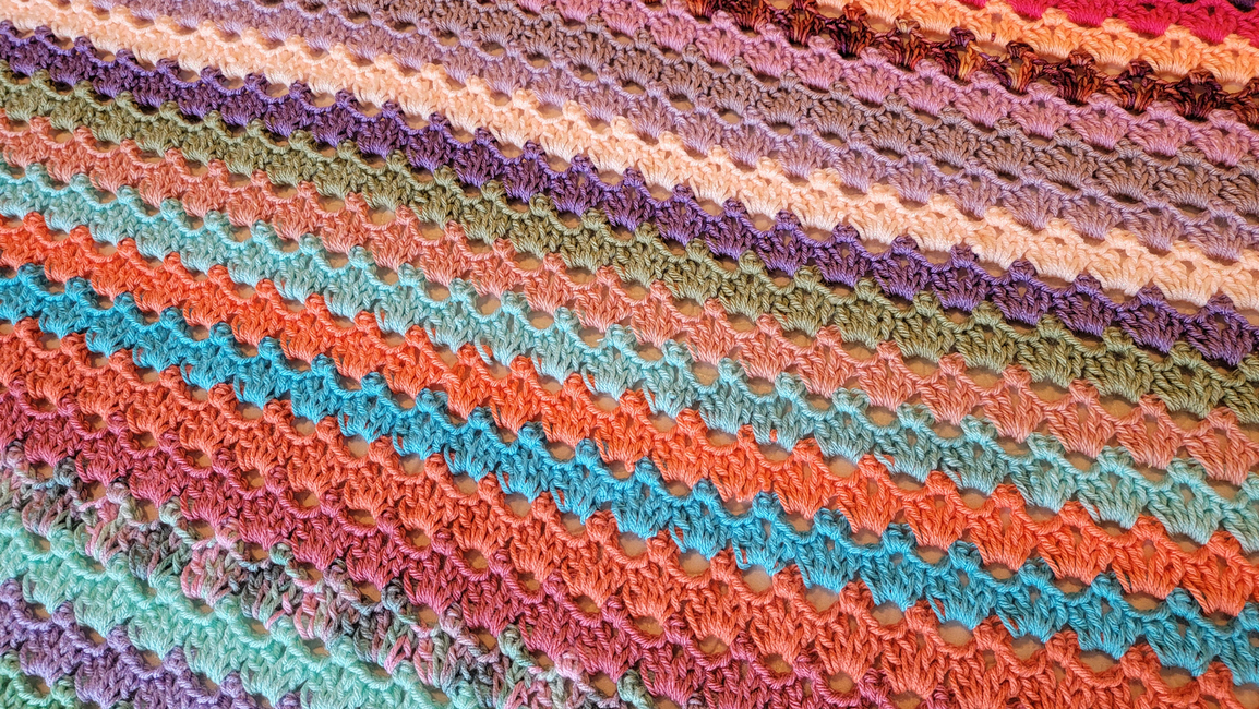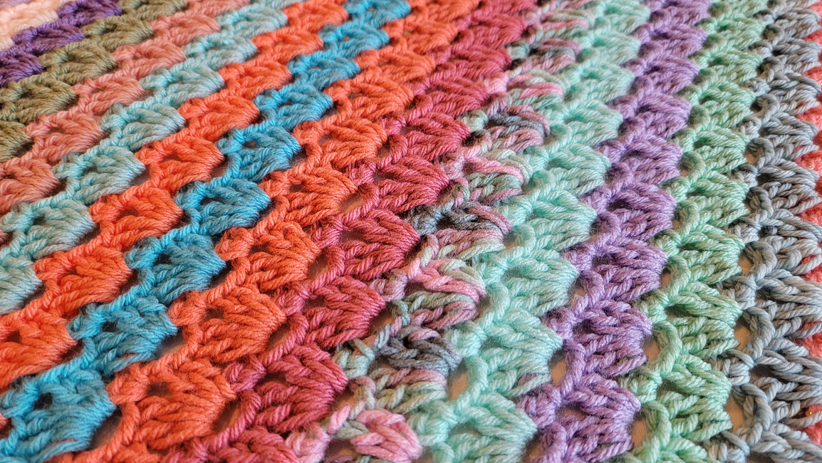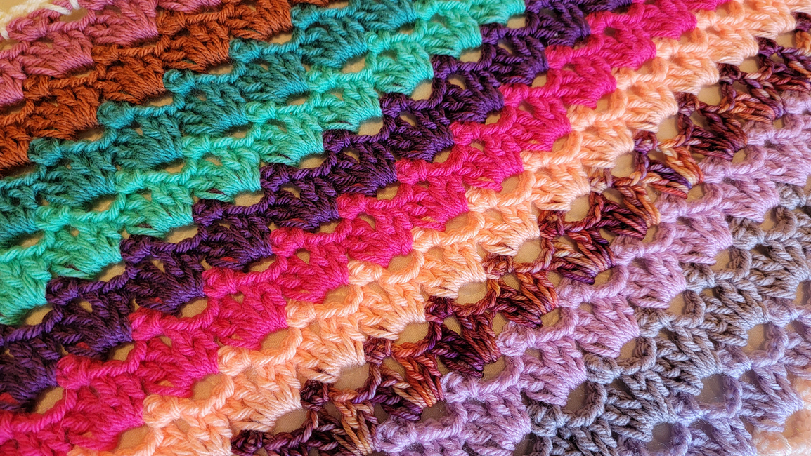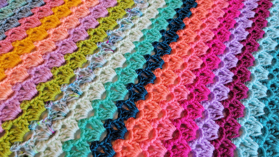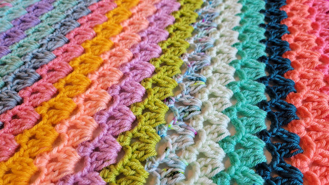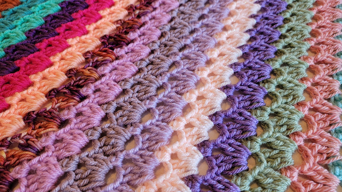 This pattern shows you how to create a crochet lace striped blanket, easily made to the size you want! Also can be made in any color(s) you want. All of my patterns can be made with different sized yarn, you would just need to match your yarn size and hook size to adjust. If you have any questions about this pattern, please contact me!