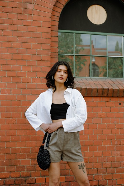 Tip: We use a medium weight suit fabric made of 100% virgin wool with a weight of 185g/sqm for the Pixie Shorts.