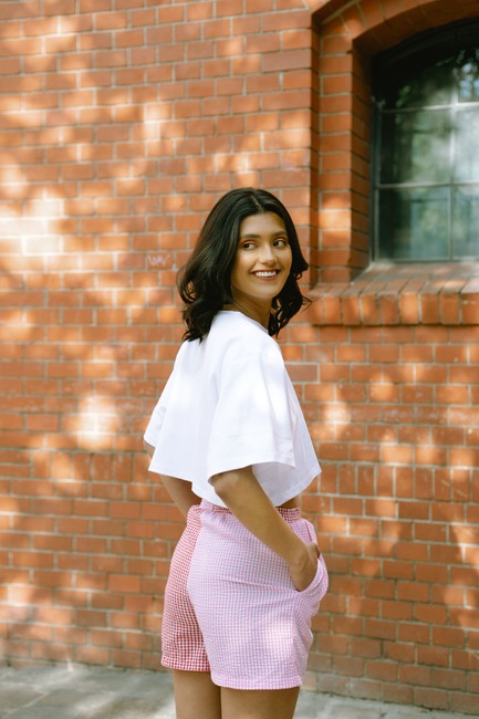 Shorts sewing pattern with elastic waistband and pleats. With free shorts video sewing tutorial.