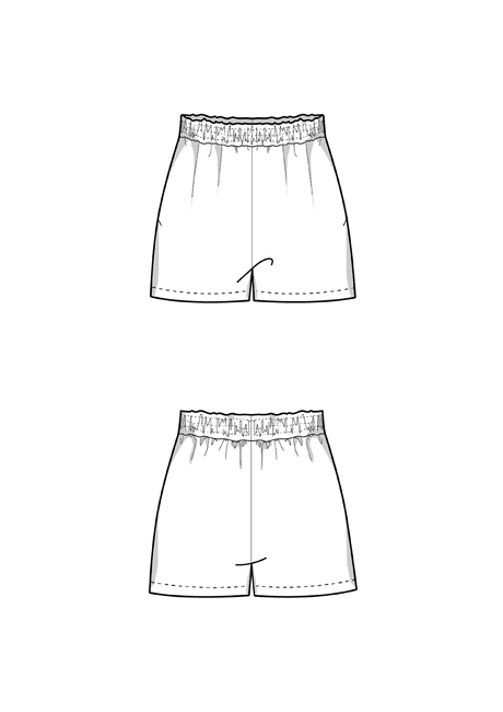 -shorts sewing pattern in German and English (in sizes XS-XXXL or customized to your measurements, either as a paper pattern or as a PDF download in DIN A4 and US Letter)