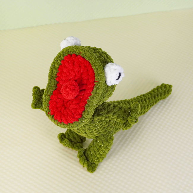 To make Shouty Lizard Crochet Pattern you will need: Color: Green, white, red, and black, Stitch markerSewing needleScissorsFiberfill. Tools required: 4mm.