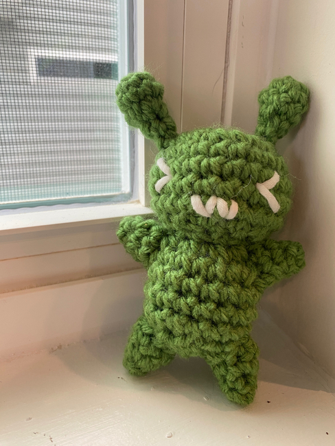 (ikea alien loosely inspired pattern which I plan on using as my "mascot")