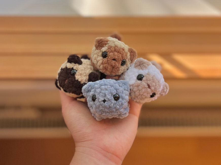 This is a no-sew crochet pattern for making a mini loaf cat! This pattern includes instructions for both a solid-colored and siamese cat.