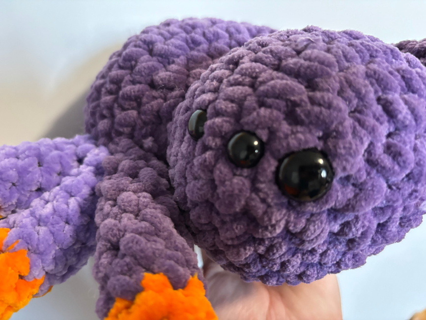Sid the Spider is an intermediate pattern that is worked in the round. He builds up quickly and is a low sew pattern. Any size hook and yarn can be used for this pattern, but those can change the size of the final product.