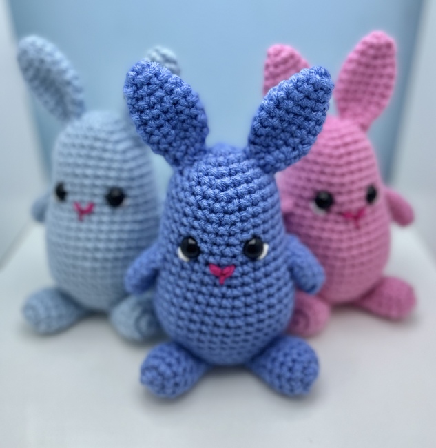 These Simple Bunnies are a great beginner amigurumi project. They have an egg shape which makes them great for Easter. They are done in single crochet, but you will need to be comfortable with increases, decreases and sewing pieces together.