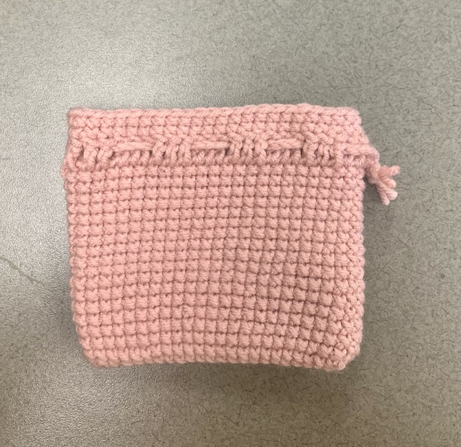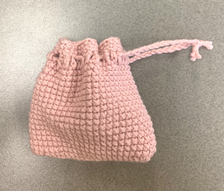 This is the coin purse I make for all the new servers at work. The drawstring enclosure allows for quick access to your money without letting any spill out. No matter how I walk with this coin purse the coins do not make noise, and nothing has ever fallen out. This pattern can also be used to house any small items you need to carry. The soft yarn would be perfect to hold crystals as well. The pattern is fully customizable, for a wider purse increase the foundation chains, you can add different color yarn for more intricate designs. This is the basic coin purse design.