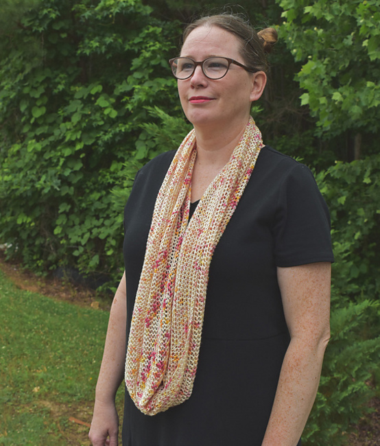 This pattern stemmed from wanting something that worked well for highly variegated colorways & to have something light to wear in warmer weather. It is a great beginner level pattern!
