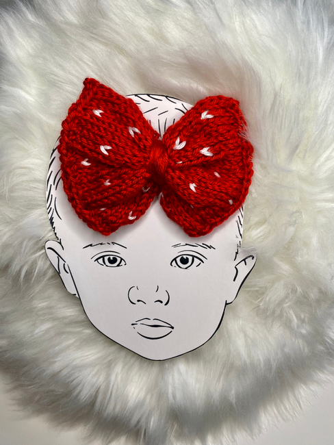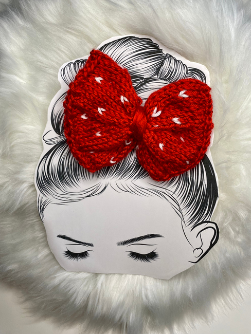 This knit bow is perfect for all ages! Attach it to a headband (I have a matching baby headband pattern available) or an elastic hair tie for kids of all ages. This bow would also look adorable attached to a pet collar. Adults can even rock this bow with a messy bun or ponytail!