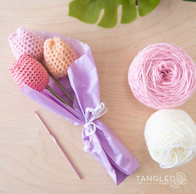 Any beautiful colour for your tulip in medium weight yarn Green yarn in medium weight for the stem and leaf