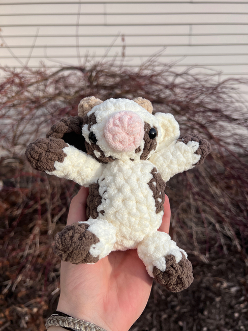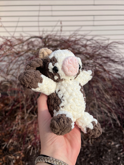 Sitting Cow is an Intermediate Crochet pattern designed by Cloud_Crochets for making an Amigurumi. This should be pretty easy pattern for most to complete. It is very easy to switch around and use any colors you want for the design and I personally have made many different colors of cows! Hope you enjoy!