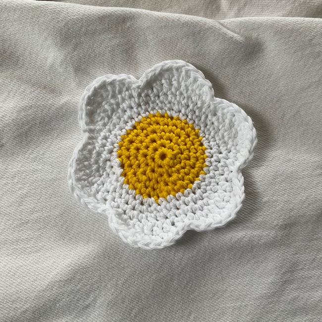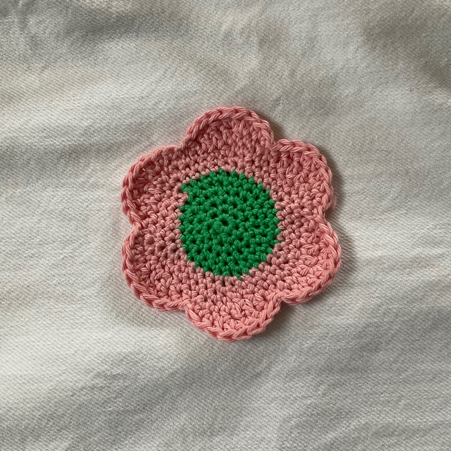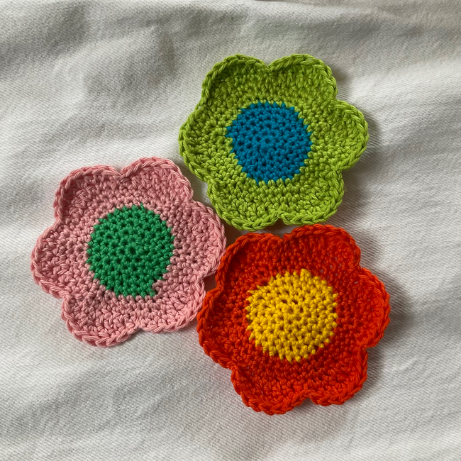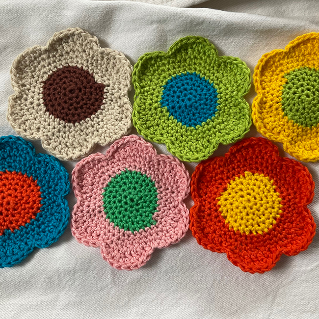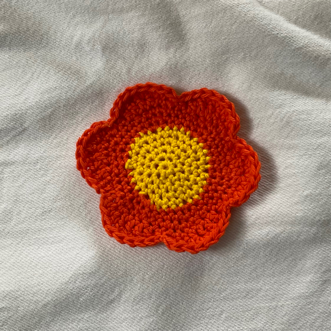 Cute six-petal flower pattern can be used as coasters, appliqués or decor! Use any colours or yarns to make different sizes and varieties of flowers. Pattern suitable for beginners and very quick to make.