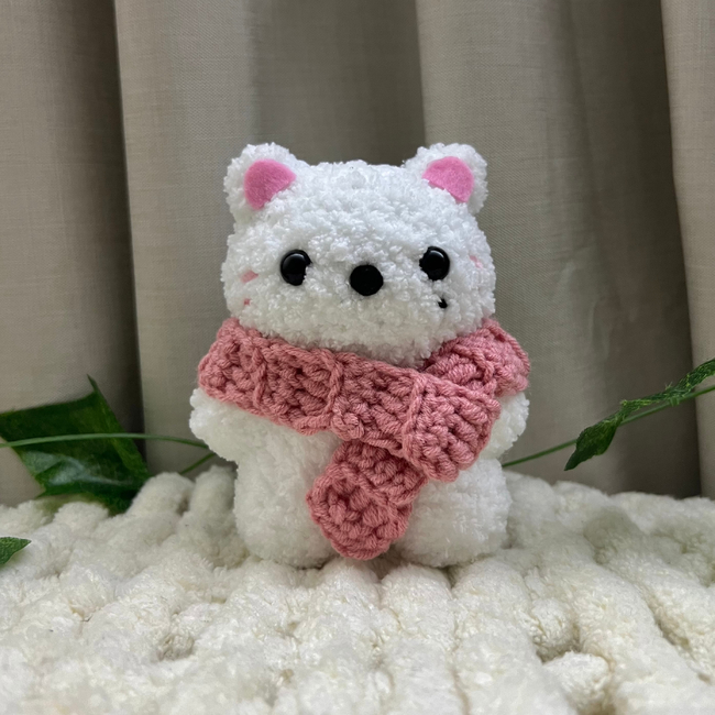 Inspired by the SKZOO Character 'Jiniret', this pattern makes an adorable Jiniret with a scarf!