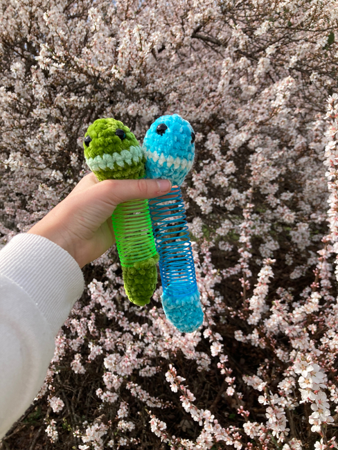 Cozy creations designed the Slinky worms! pattern. Find more of their patterns on their Ribblr shop page.