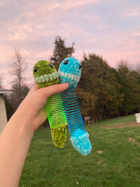 Slinky worms! is a Beginner Crochet pattern designed by Cozy creations for making an Amigurumi. These slinky worms are really fun to make and fidget with! I made my worm in about an hour or less. This pattern is beginner friendly and pretty easy to make. Thanks for using my pattern and have fun making your fidget worms!!! Please do not copy ...