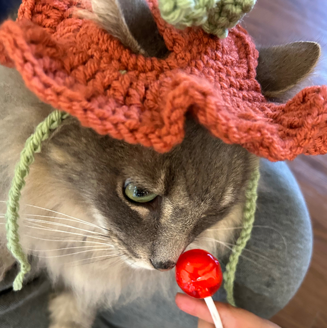 Made this hat for my kitty :) works up pretty fast, fun little project to do in your free time!