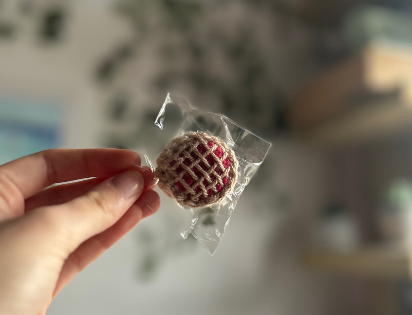 This small little pie is made as a cute accessory or even a keychain