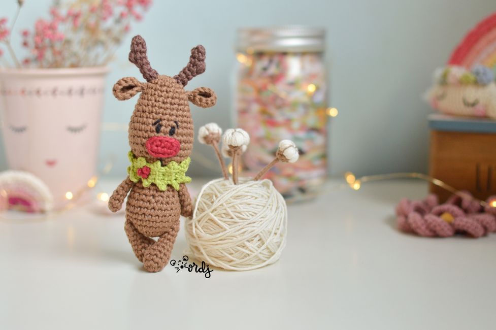 Little Rudy amigurumi pattern. Crocheting Guide to knit little Rudolf amigurumi.