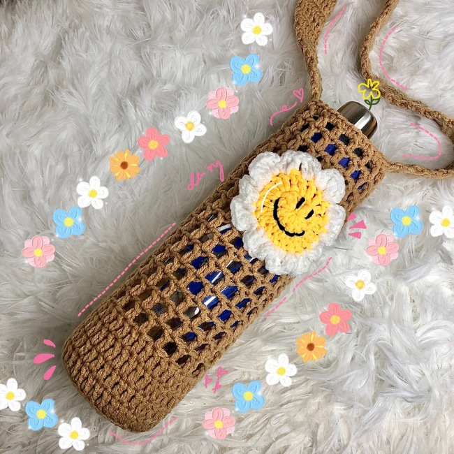 smiley daisy water bottle holder is a Beginner Crochet pattern designed by lavhandaisy.co for making an Accessories. hello lovelies!thank you so much for taking interest in this pattern! I really appreciate all the supports and loves from each of you hope you will enjoy making this cute water bottle holder!Regarding the term of use, you're allowed to sell the PH...