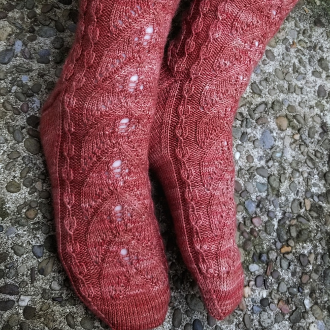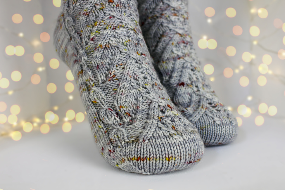 The pattern is written for the magic loop method for knitting socks; however, the design could be worked on double-pointed needles or mini-circulars instead should you prefer.