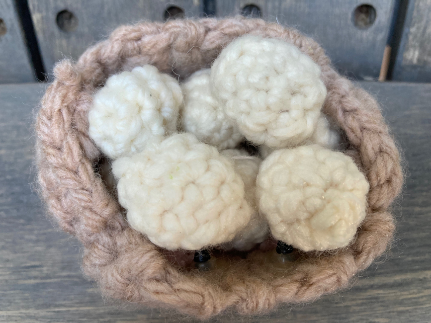 This cute snowball basket is a quick work-up and perfect for the holiday seasons!! It is made in two parts, the basket and the snowballs! Please contact me if you find any errors. Enjoy!