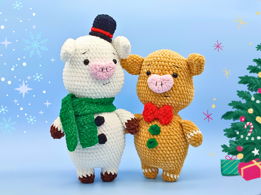 Introducing my Snowpig and Gingerbread Pig Bundle - interactive crochet patterns for two low sew Amigurumi Christmas Pigs.