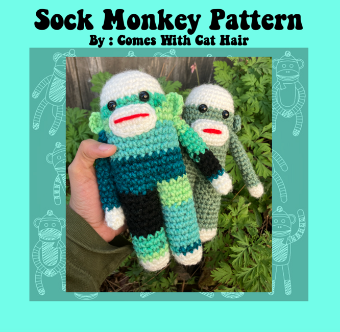 Adorable crochet sock monkey pattern! Can be made in any size!