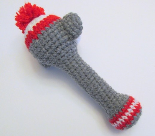 This little rattle is so cute, works up quick, and makes a great baby shower gift!