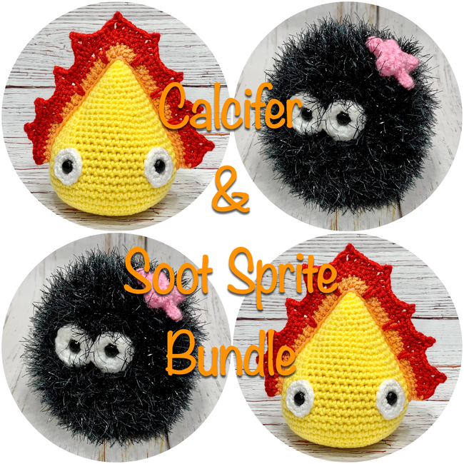 You'll get both patterns for a lower price when you buy them as a bundle! Calcifer the fits demon from Howl's Moving Castle and a spot sprite from Totoro and Spirited Away!