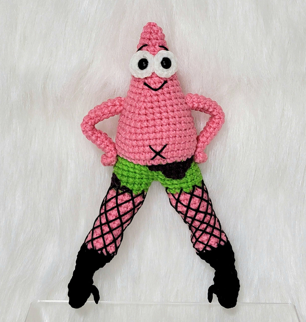 This is Spicy Starfish he's pink, he's round, he's wearing fishnets and he has absolutely no idea why. He just knows he looks amazing and he's ready to be your best buddy forever.