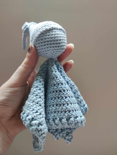 This lovey is ideal to make for a baby. Its 18cm big and ideal for little hands.