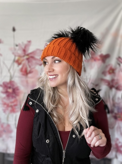 Dannis Designs Crafts designed the Spooky season beanie pattern. Find more of their patterns on their Ribblr shop page.