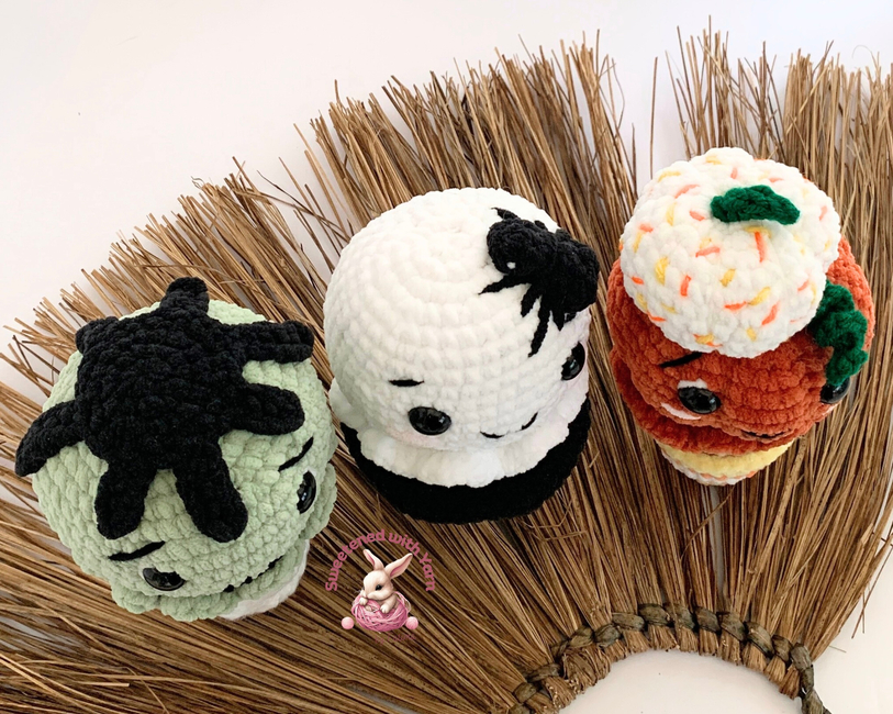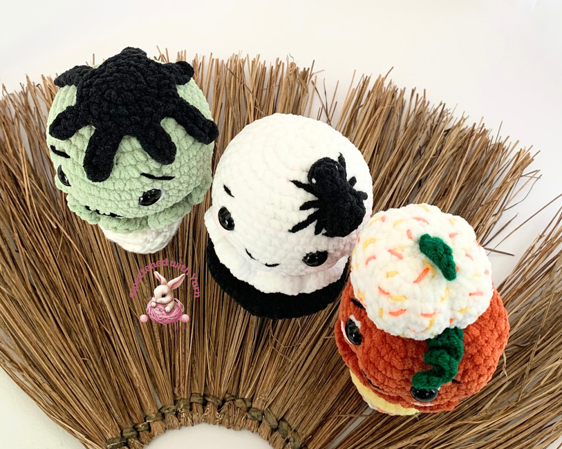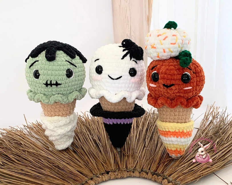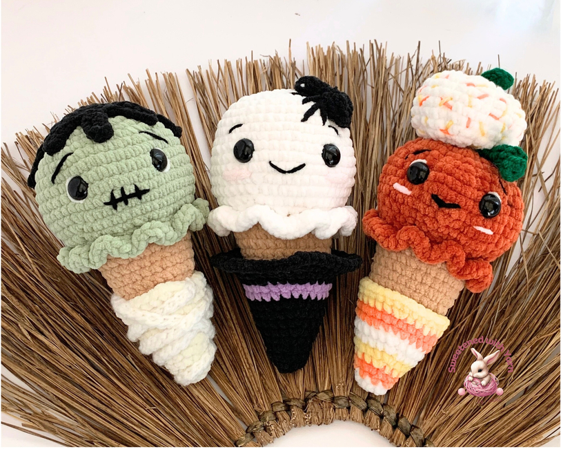These adorable Zombie, Ghost, and Pumpkin-shaped ice cream cones are definitely a treat! The patterns are also available individually and in this Spooky-licious pattern bundle. Each crochet is a quick, whimsical journey, perfect for market makes or a relaxing project at home.
