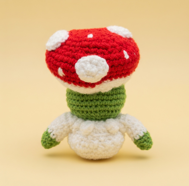 With his charming little mushroom hat and his bright, happy smile,
