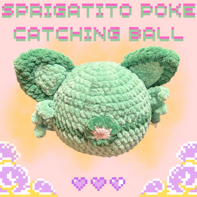 Crafty_Piglet designed the Sprigatito catching ball pattern. Find more of their patterns on their Ribblr shop page.
