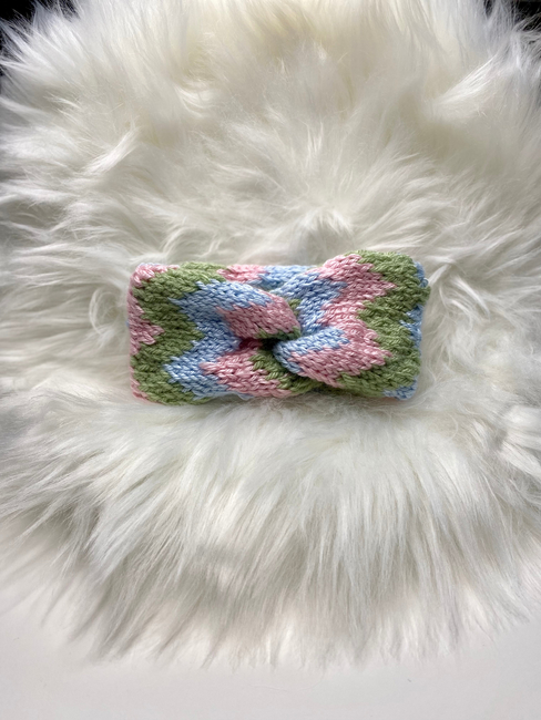 This baby headband pattern is the perfect gift for a new baby. It measures about 14 inches, which should fit most newborn babies. It can easily be adjusted by adding more rows following the color chart and/or increasing needle sizes. I have a matching bow pattern available that can be attached for a cute addition. I also have a matching adult-size headband pattern that is perfect for a matching mommy-and-me accessory.