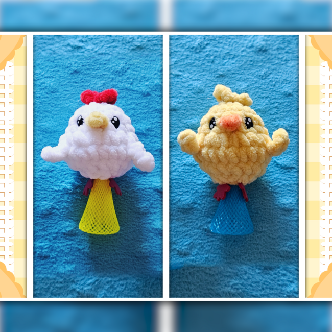To make Spring Hoppers Fidget | 9 in 1 | Crochet Pattern you will need: Chicken, Duck,Cow,Bunny, Cow, Pig, Bunny,Pig,Frog,Cow, Bee,Chick,Duckling,Chicken, Bee,Cow,Duckling,Duck, Chicken, Frog,Duck, Duckling,Duck,Chick, Saftey Eyes/nose, Fiber fill, Jumping Popper Spring Launcher Toys,**MESH BOTTOMS**NOT a metal spring**approximately 1.2@Qx 2.8@Qwith a ball head and arms, SPECIAL NOTEfor larger Hopper/Popper Fidgets you can size up the hook and/or yarn weight. Tools required: 4mm, tapestry needle,scissors,stich marker,.