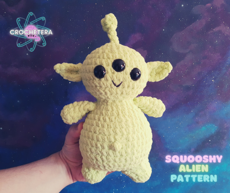 A chunky little buddy from outer space! Made with Bulky Yarn and a 6mm hook.