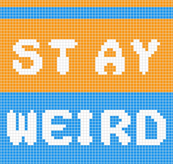 Sized at 60 stitches wide × 57 rows tall, this piece is worked in single crochet using tapestry technique for crisp, bold lettering. Perfect as wall art for your room, studio, or creative space, it's a celebration of embracing the wonderfully weird.