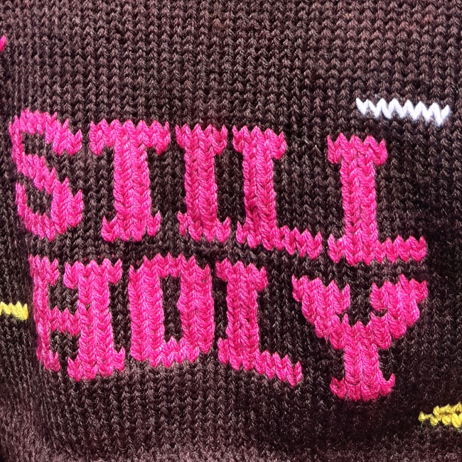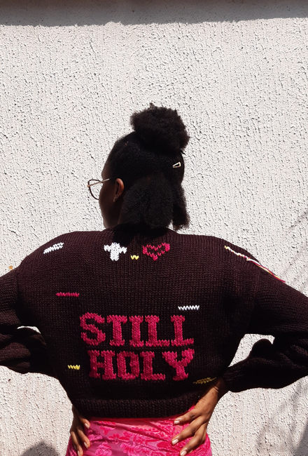 It's gotten from a song I love by indie tribe "STILL HOLY". And what better way than to put it on a sweater!