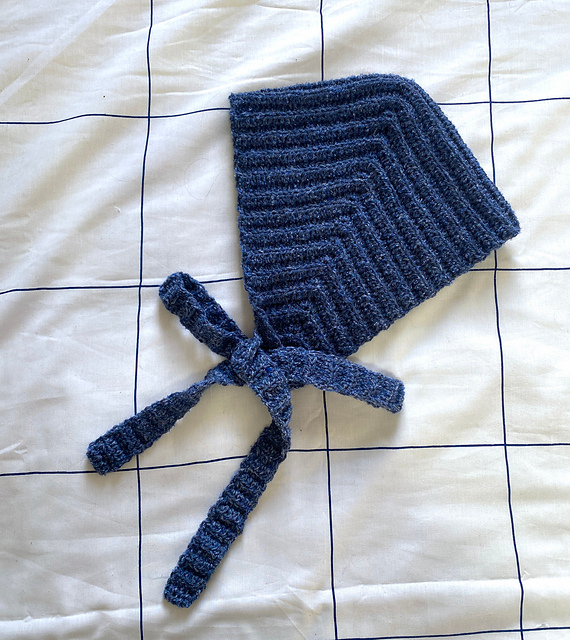Knitted by Luna designed the Stingray Bonnet pattern. Find more of their patterns on their Ribblr shop page.