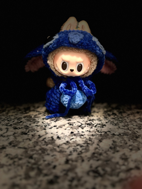 A cute blue alien pattern to dress up your labubus.