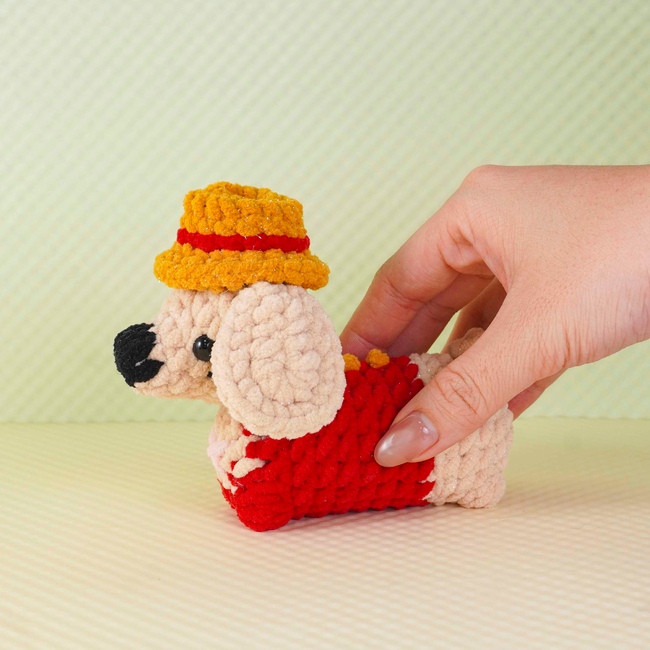 The Straw Hat Dachshund Crochet Pattern pattern makes a Amigurumi. It is a Intermediate Crochet pattern.