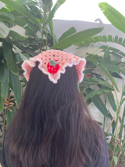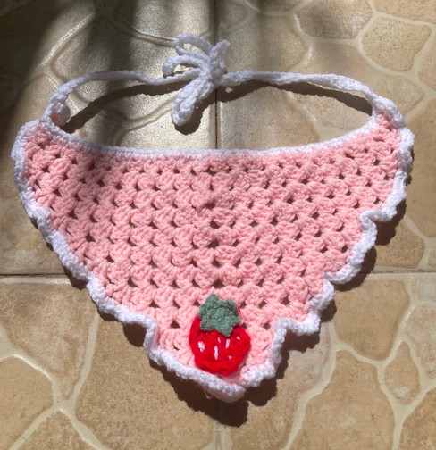 The Strawberry bandana pattern makes a Accessories. It is a Beginner Crochet pattern.