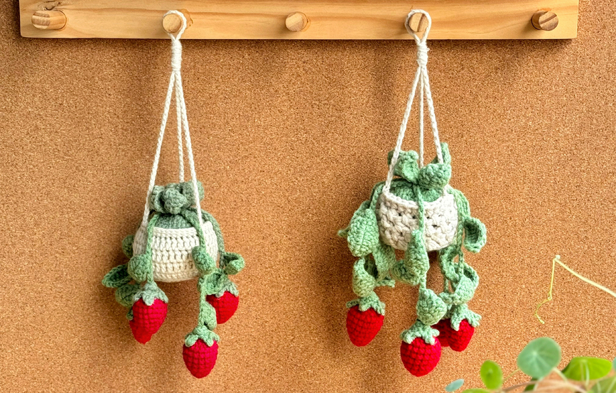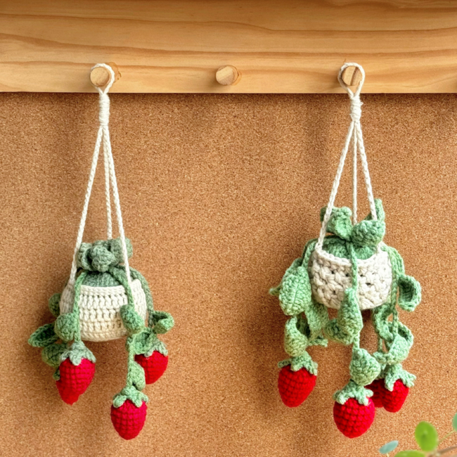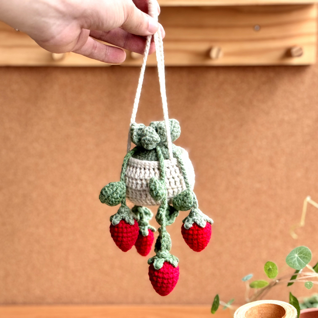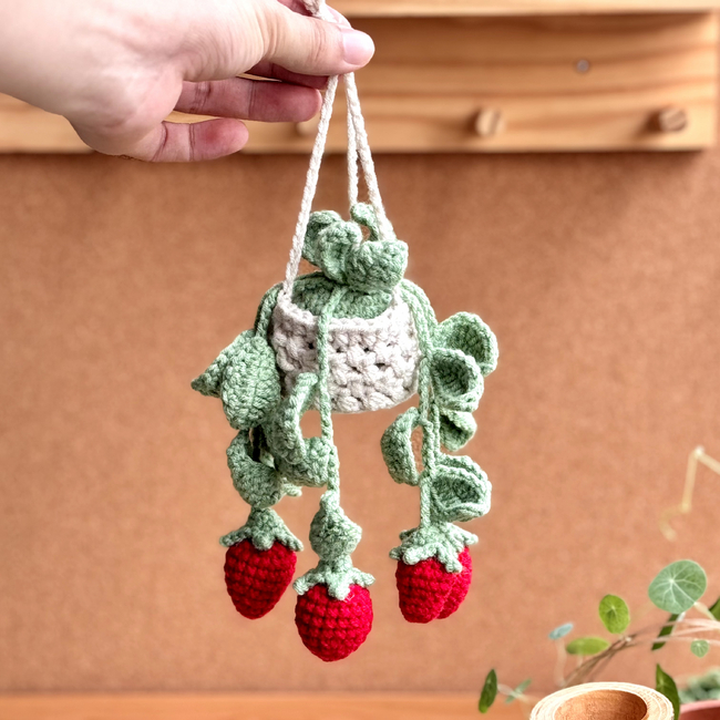 Strawberry Basket Crochet Pattern, Plant Crochet Pattern, Hanging Plant Pattern, Flower Basket Hanging Crochet, Car Hanging Crochet Pattern