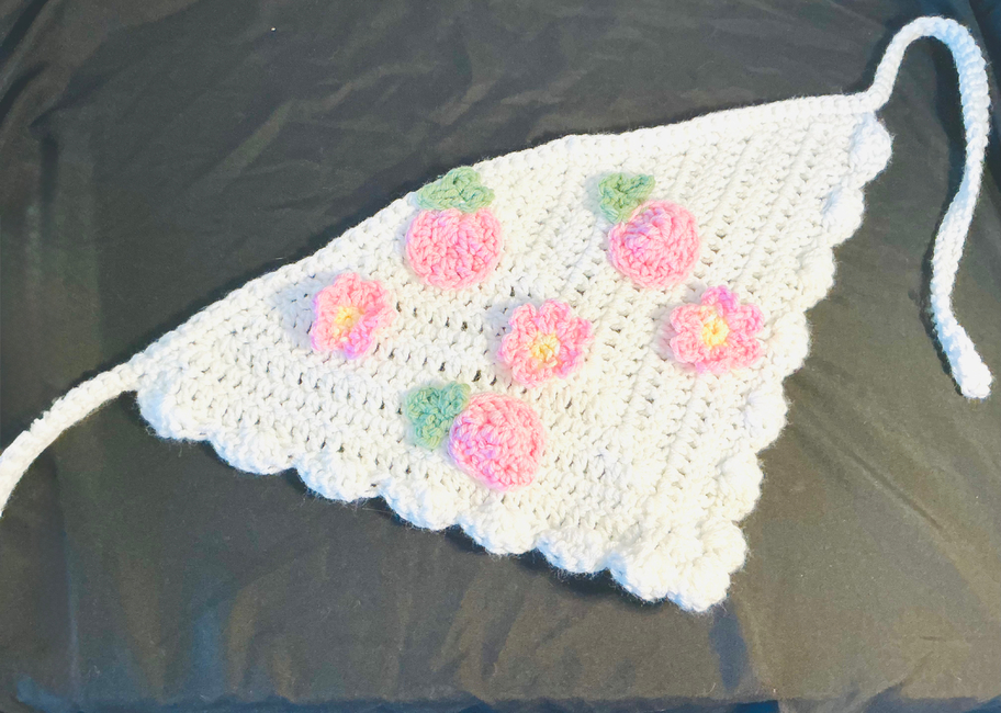 Strawberry fields bandanna is a Beginner Crochet pattern designed by The Yarn Yeti for making an Accessories. A cutesy, adorable bandanna fit for a spring queen!