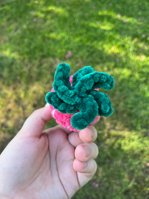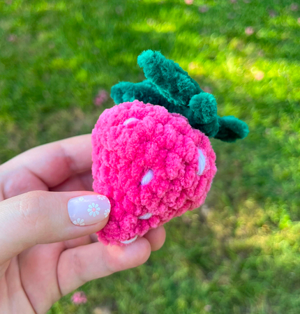 Adorable and quick crochet strawberry plush! The perfect size to add to a purse, keys, or backpack! This pattern works up really fast and is a fun pattern for gifts, market prep, and learning how to crochet plushies.